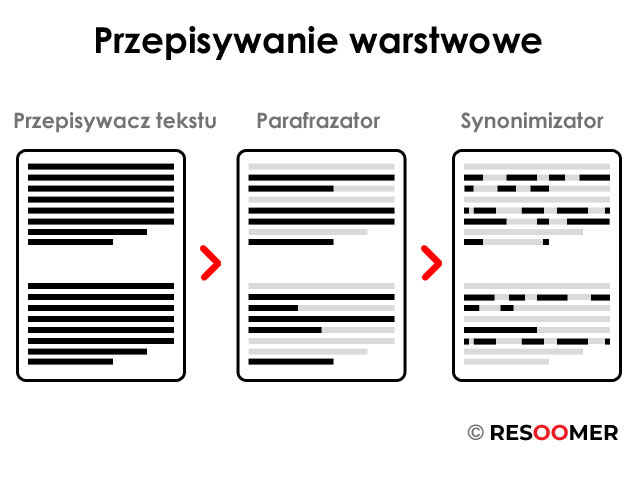 To pierwszy krok. Ten, który nadaje tekstowi nową ogólną formę. Znaczenie pozostaje nienaruszone. Zmienia się struktura. Pole semantyczne naturalnie się poszerza, ponieważ te same idee są wyrażane za pomocą innych sformułowań, innych konstrukcji i innych słów wyjściowych.